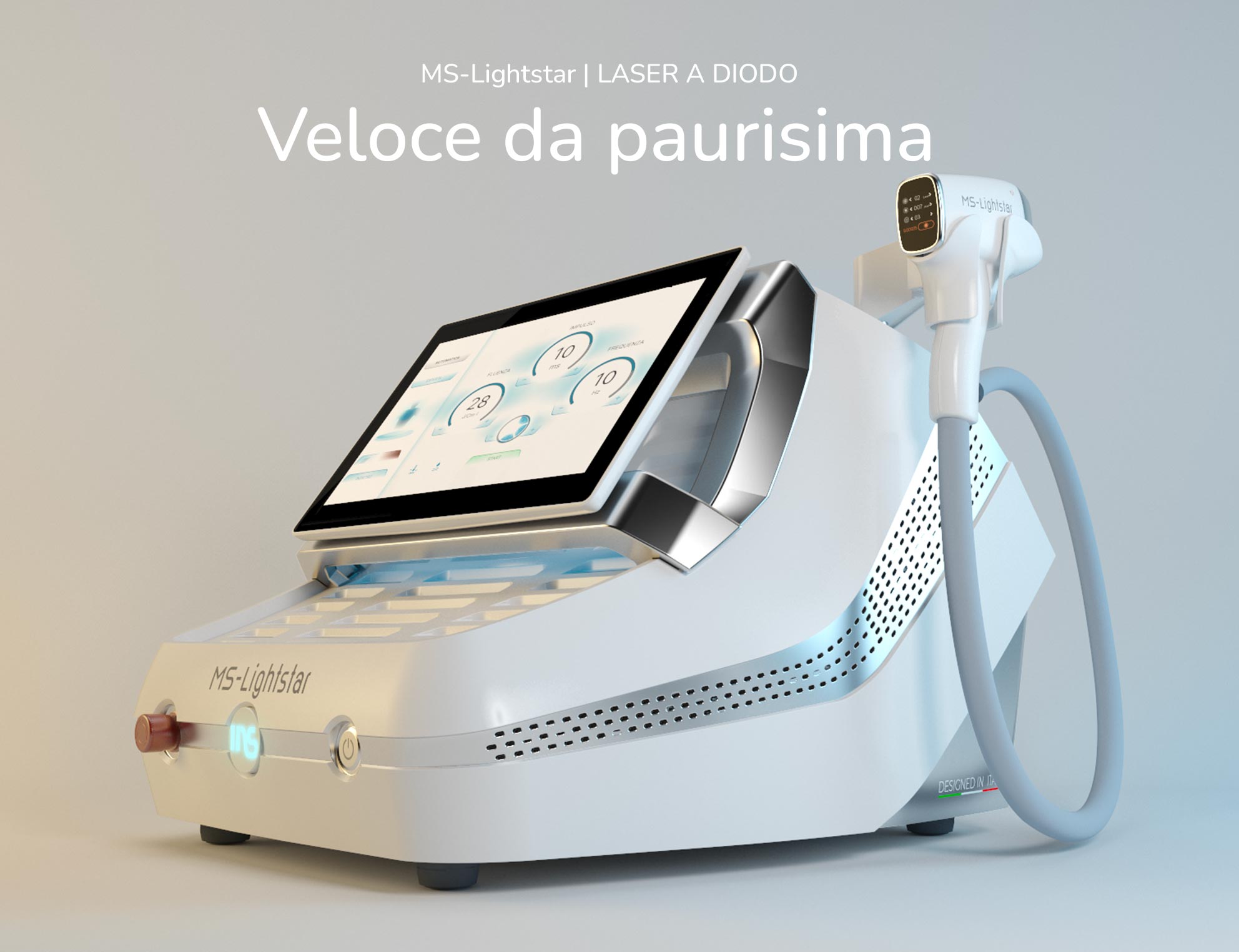 Da più di 20 anni lavoriamo con la tecnologia medico-estetica: per questo oggi possiamo garantire che MS-Lightstar® è il Laser a Diodo a 3 lunghezze d’onda per l’epilazione definitiva, più sicuro e veloce di sempre. Non a caso i professionisti del settore continuano a chiedercelo: MS-Lightstar® è il nuovo laser professionale di quarta generazione che fonde perfettamente performance uniche in un design innovativo assolutamente Made in Italy.